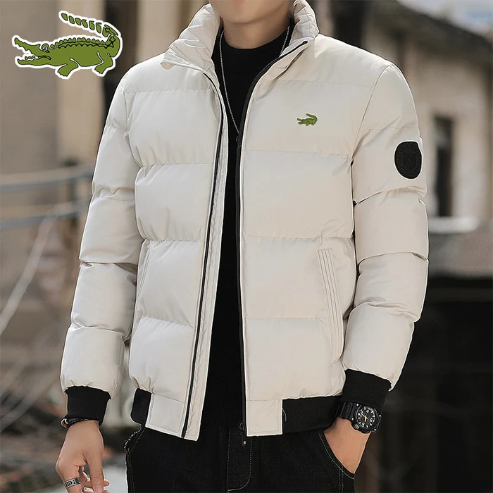 Confeccionada em poliéster, esta jaqueta é repelente à água. Possui isolamento térmico e gola alta. Possui logotipo da marca fixada no corredor do zíper, no interior da peça, em cima da etiqueta estilizada. Possui um bolso interno no lado esquerdo do peito, e bolsos laterais com fechamento por zíper. Clássico símbolo da marca bordado no lado esquerdo do peito.
