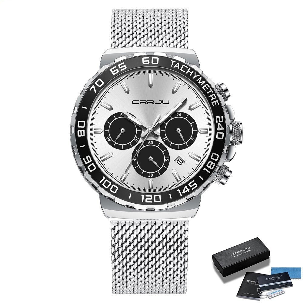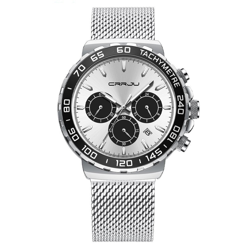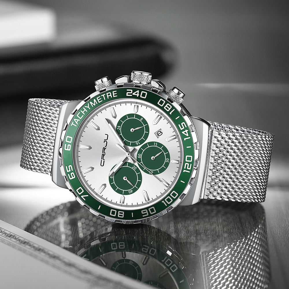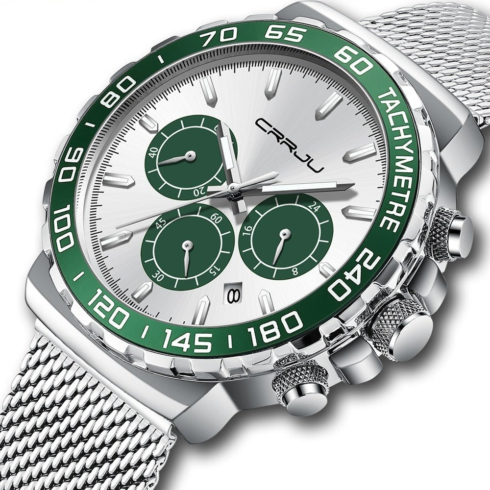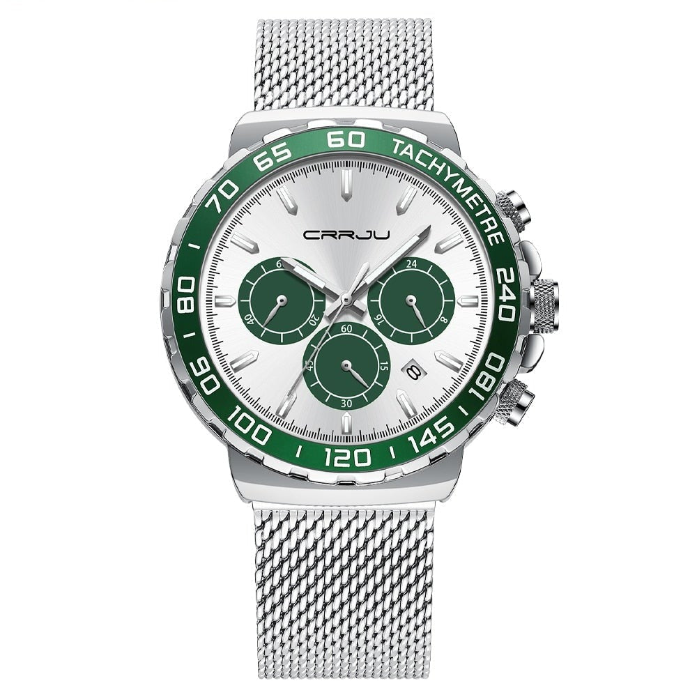 Todo confeccionado em aço inoxidável possui cronógrafos e todos são funcionais que ganham grande destaque no fundo do mostrador, completo e elegante de extrema qualidade garantindo a resistência adequada, Sua linda pulseira de 3 fechos com pino de segurança dando conforto e segurança durante o uso. Um relógio para homens marcantes e com personalidades intensas.