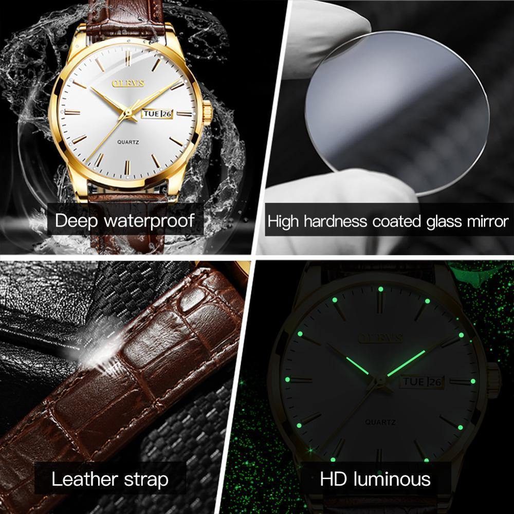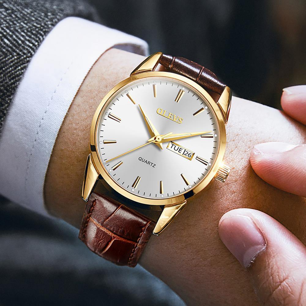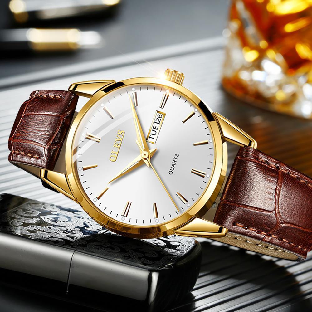 Completo e elegante, o relógio OLEVS é confeccionado em aço inoxidável, garantindo a resistência adequada. A pulseira em couro legítimo feita a mão dá um toque de modernidade e seus traços marcantes são perfeitos para homens com personalidades intensas.