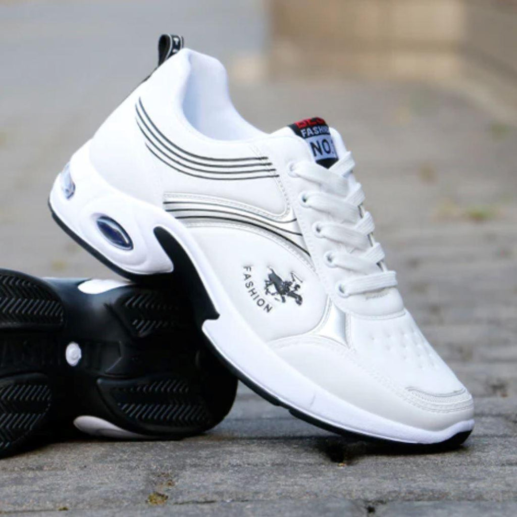 Feito em couro premium para garantir a máxima qualidade aos seus pés e proporcionar um caminhar mais confortável e sem dores; O tênis masculino de couro possui um corpo respirável para bloquear a proliferação de bactérias e não causar maus odores.